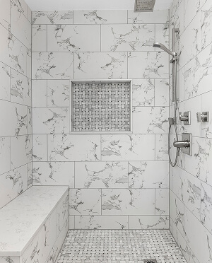 Tile and finish updates often include modern shower surrounds, heated flooring, and upgraded fixtures. Every installation is planned to look clean and perform well over time.